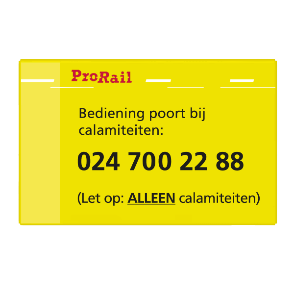 Waarschuwingsbord ProRail - Bediening poort bij calamiteit - 300x190mm